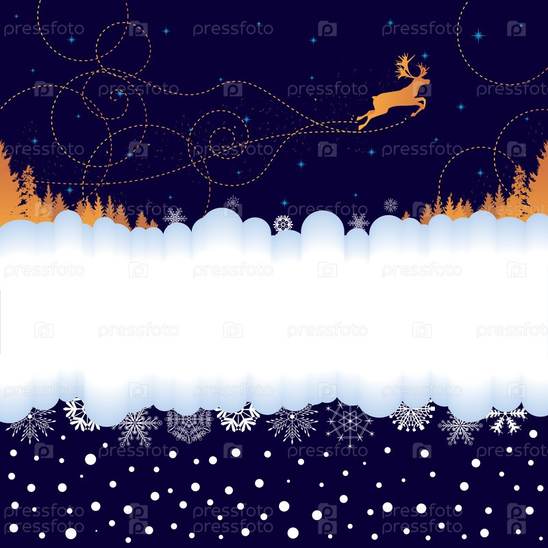 Новогодний плакат с оленем и снежинками