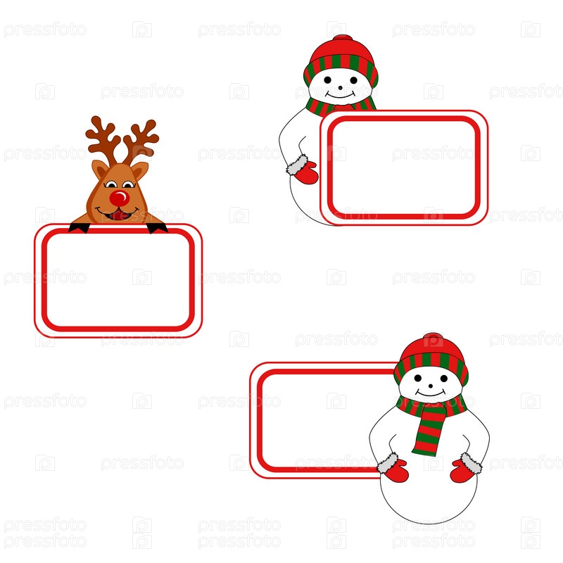 Набор карточек с рождественскими персонажами (олень и снеговики)