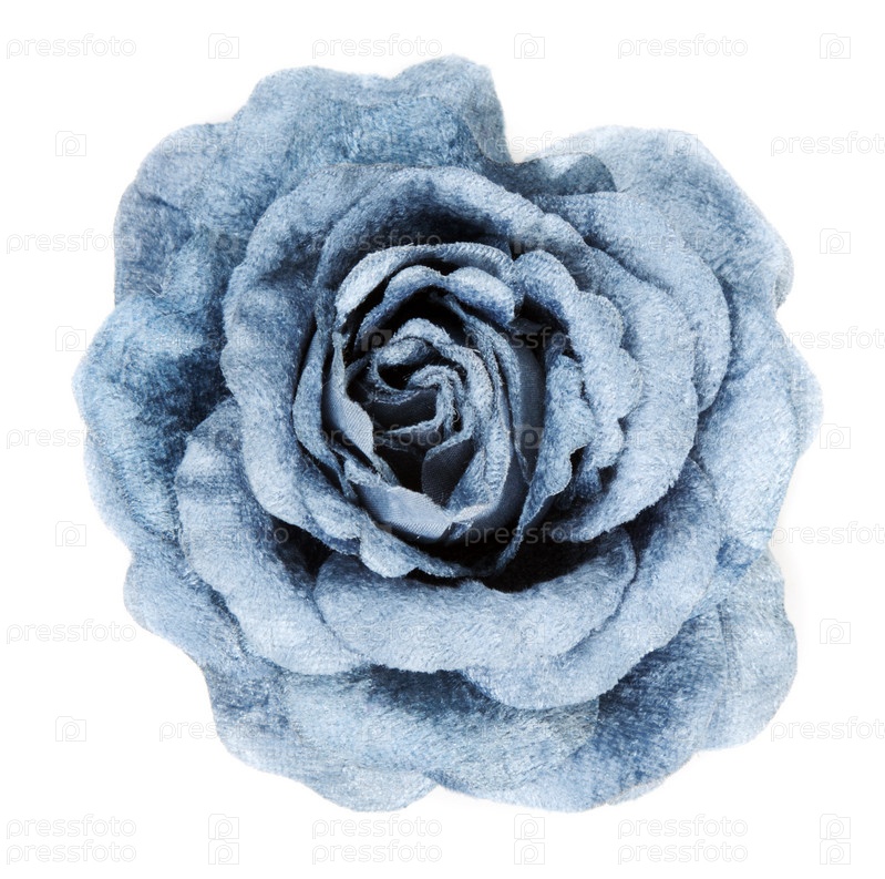 Голубая роза из ткани на белом фоне