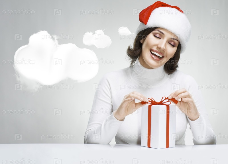 Девушка открывает новогодний подарок