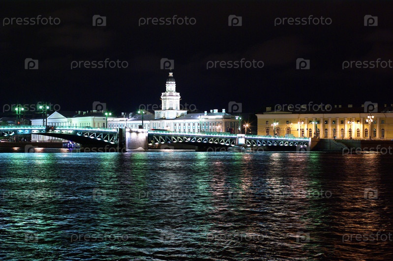 Ночной вид на Васильевском острове в Санкт-Петербурге