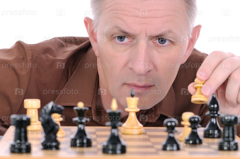 Мужчина средних лет играет в шахматы