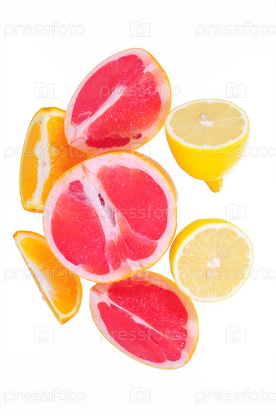 Дольки апельсина, лимона и грейпфрута на белом фоне