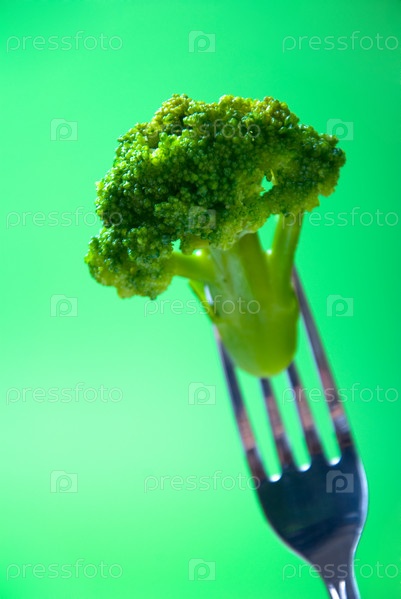 Брокколи на вилке крупным планом