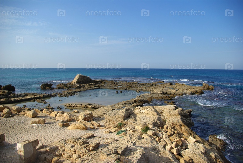 Развалины древнего морского порта в Кейсарии, Израиль