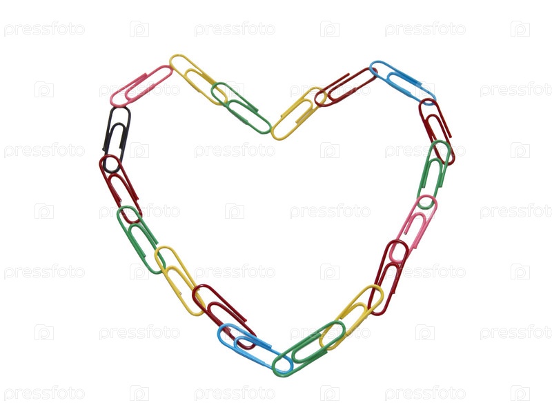 Сердце выложено из цветных канцелярских скрепок