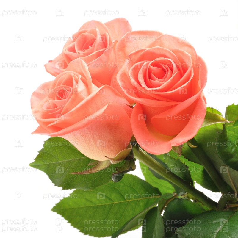 Три алые розы на белом фоне