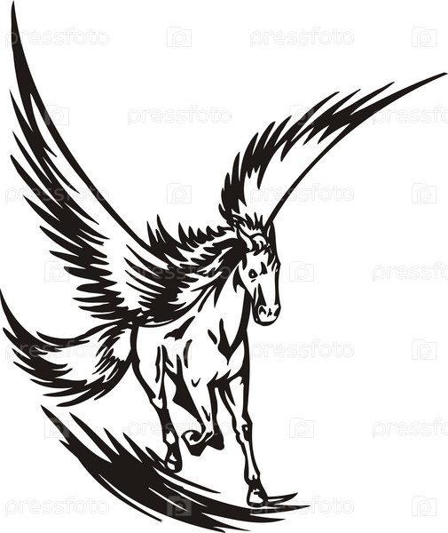 Черно-белое изображение пегаса
