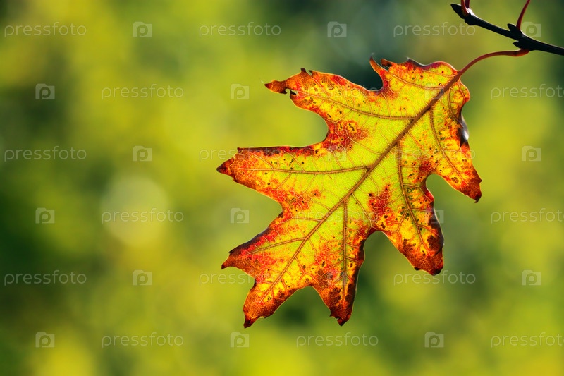Осенний лист на светло-зеленом фоне