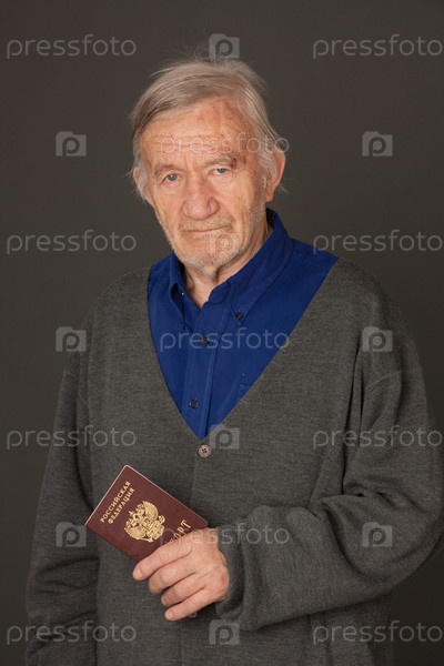 Пожилой мужчина с паспортом