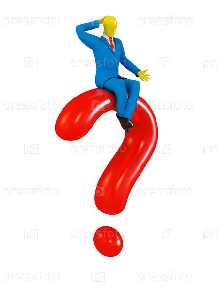 Бизнесмен сидящий на вопросительном знаке