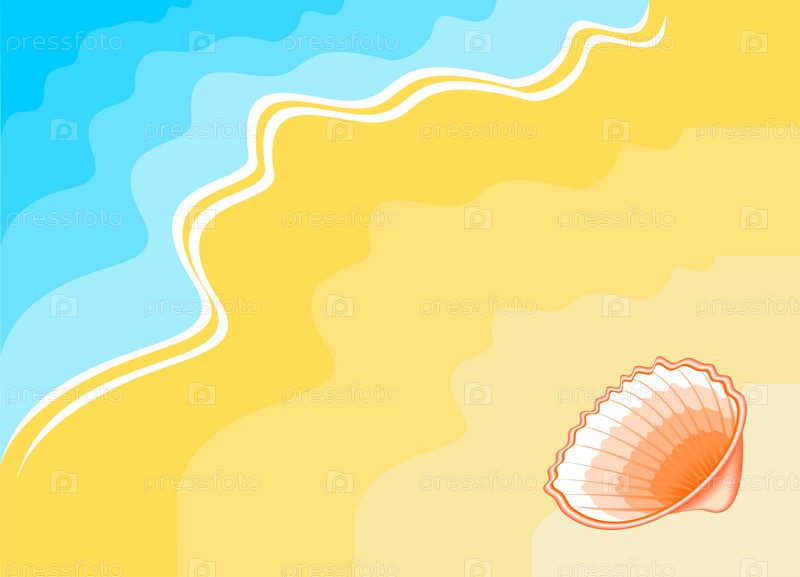 Нарисованная ракушка на песчаном берегу моря