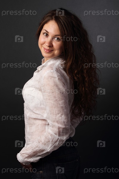 Улыбающаяся девушка на темном фоне