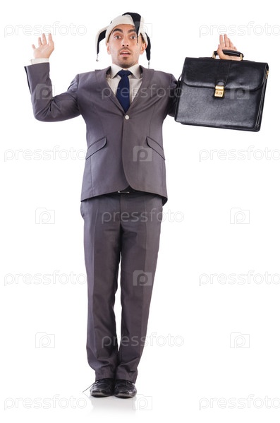 Бизнесмен-клоун, изолированный на белом фоне