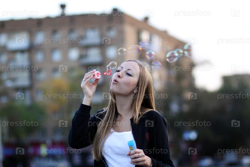 Девушка пускает мыльные пузыри