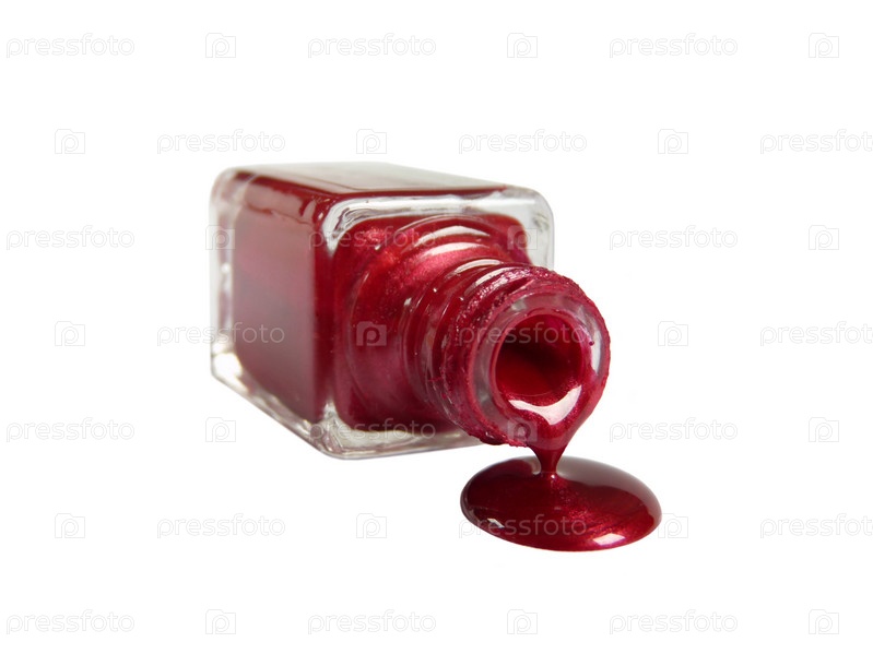 Лак для ногтей красного цвета, вытекающий на белую поверхность