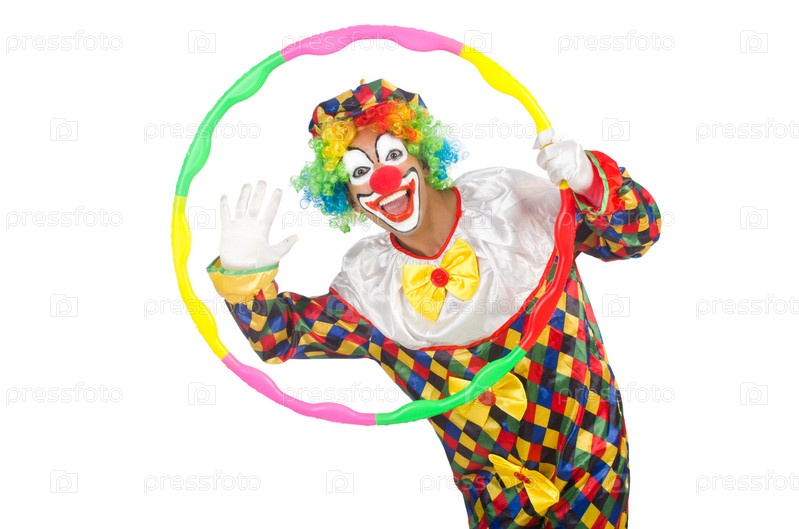 Клоун с обручем, изолированная на белом фоне