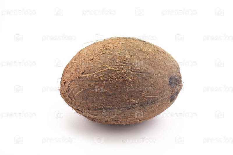 Кокосовый орех, лежащий на белом фоне