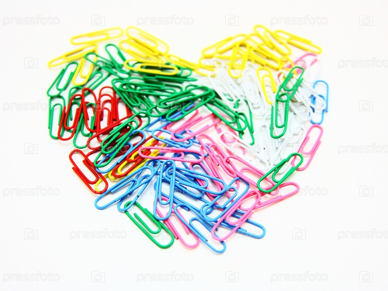 Сердце из разноцветных скрепок на светлом фоне