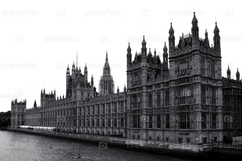 Здание парламента в черно-белом изображении, Лондон