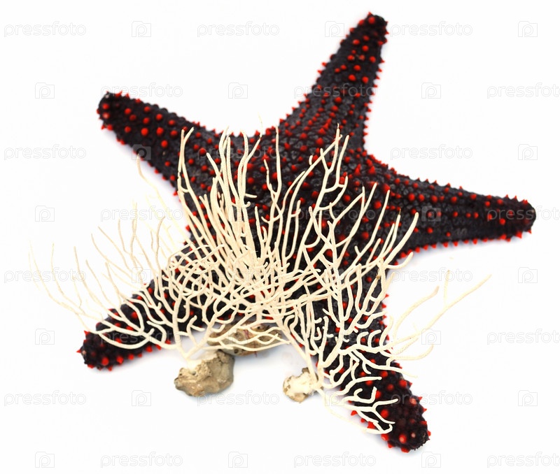 Морские звезды и кораллы на белом фоне