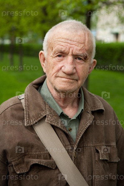 Пожилой мужчина в коричневой куртке