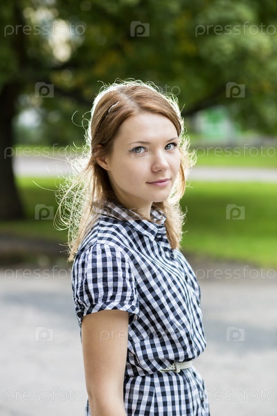 Портрет женщины в синем клетчатом платье
