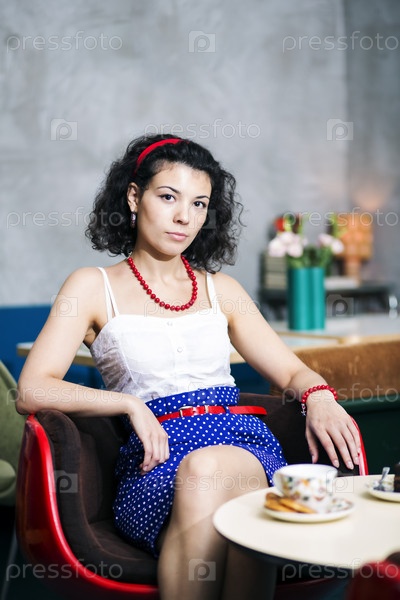 Серьезная женщина на стуле в кафе