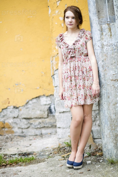 Женщина в платье в цветочек ждет друга