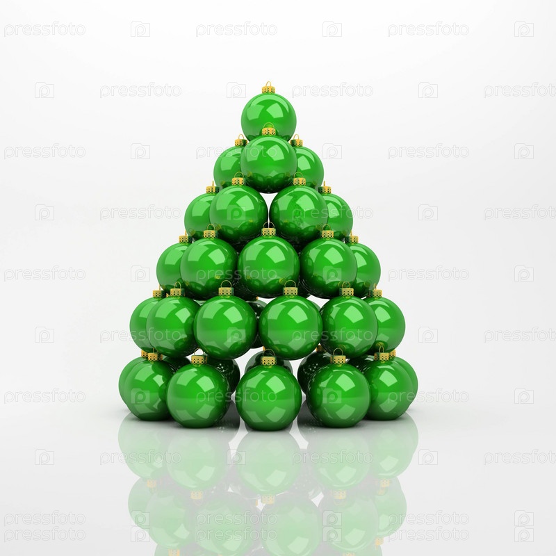 Пирамида из зеленых рождественских шаров на светлом фоне