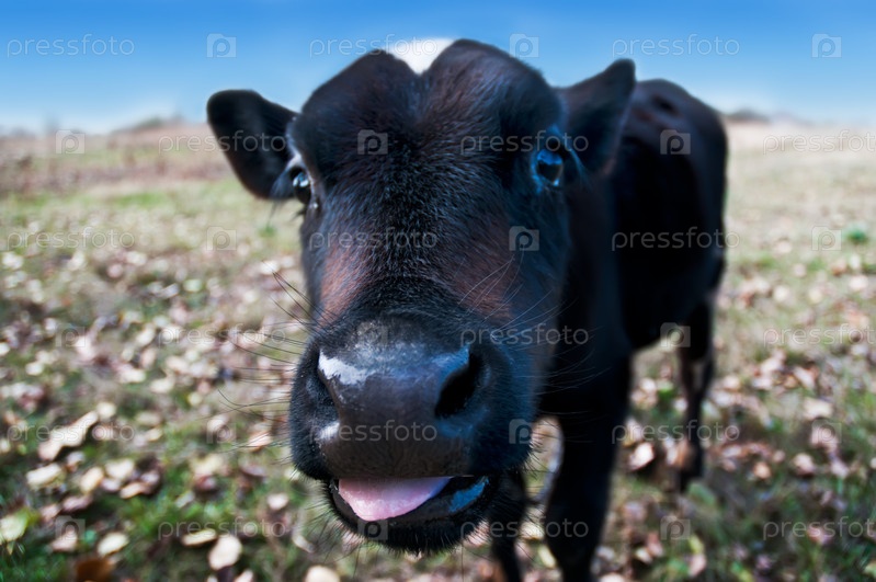Теленок, показывающий язык