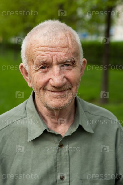 Портрет доброжелательного пожилого мужчины на фоне природы