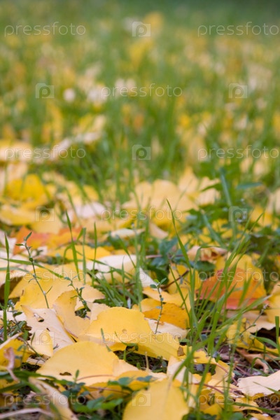 Осенние листья на зеленой траве