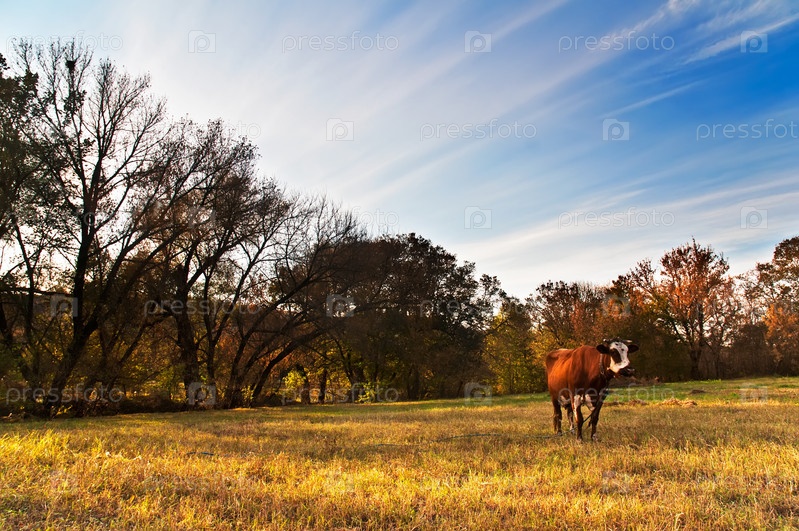 Корова пасется на лугу