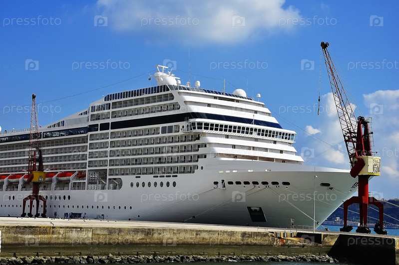 Большой белый лайнер у порта