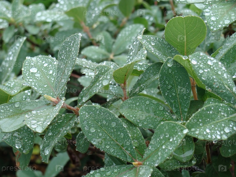 Зеленые листья в капельках дождя