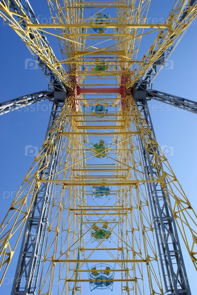 Круговорот, большое колесо, снизу вид на фоне неба