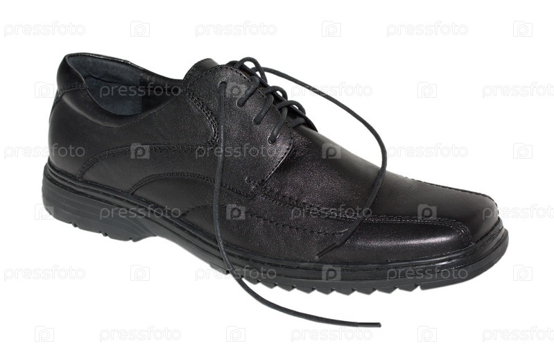 Черный мужской ботинок на белом фоне