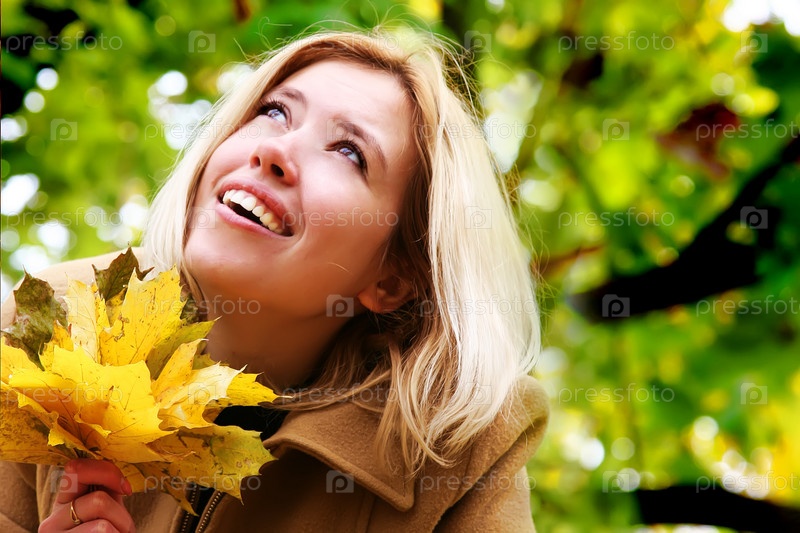 Молодая девушка с осенними листьями