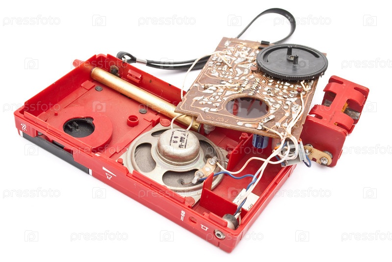 Разобранное радио на белом фоне