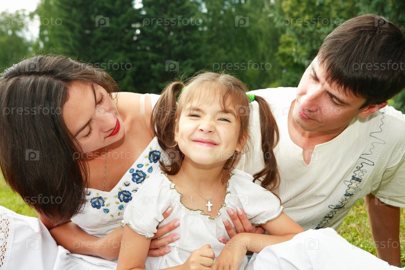 Молодые родители, обнимающие дочь