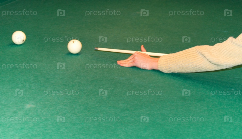 Рука с бильярдным кием тянется к шару