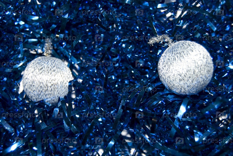 Елочные шары в синей мишуре