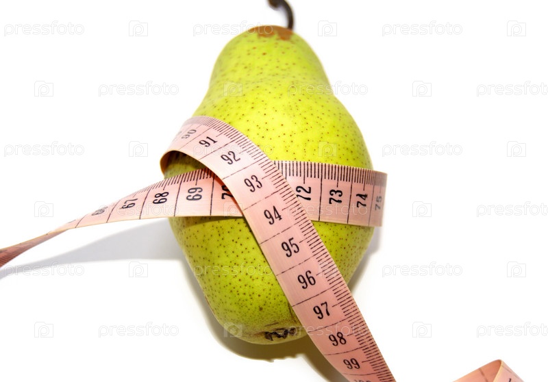Сантиметровая лента вокруг груши на белом фоне