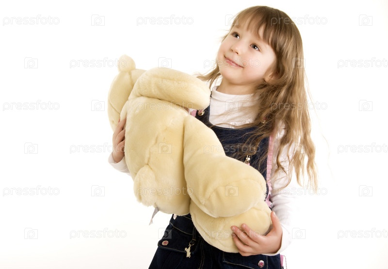 Маленькая девочка держит плюшевого мишку