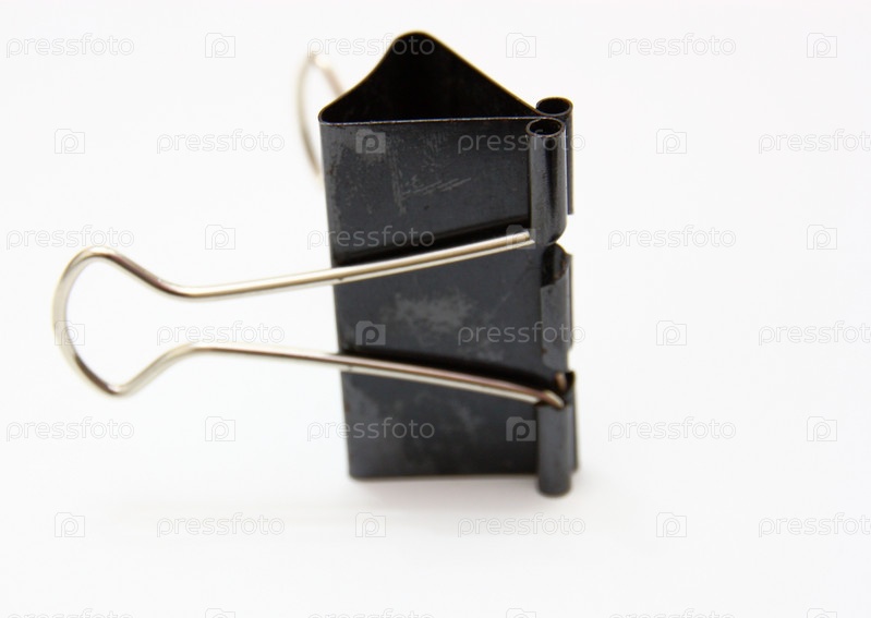 Большой черный металлический зажим на белом фоне