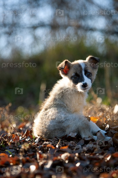 Щенок но фоне осенней листвы