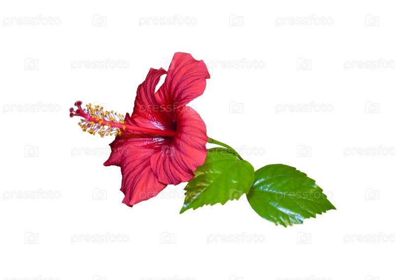 Розовый цветок с листьями на белом фоне