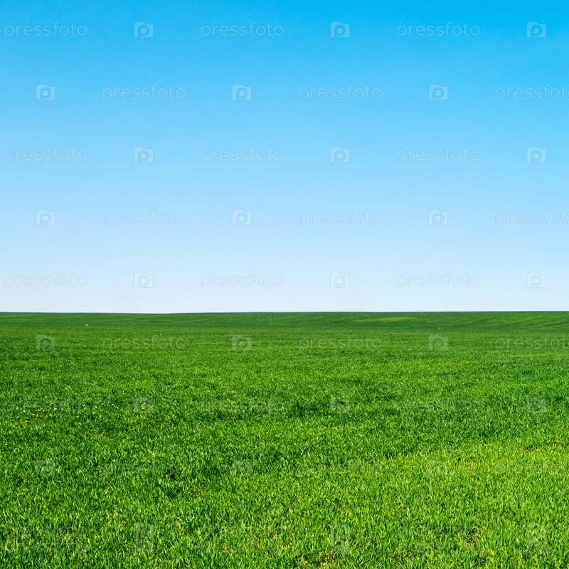 Зеленый газон на фоне голубого неба