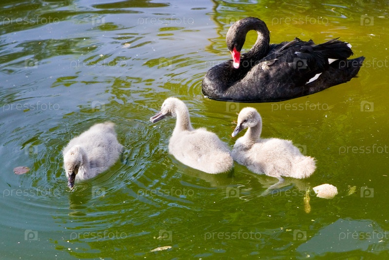 Семья лебедей на пруду